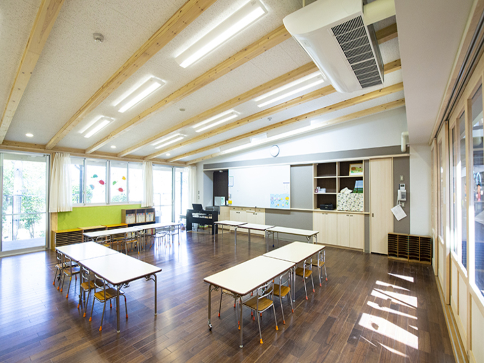 槇塚幼稚園は園舎に木材をふんだんに取り入れ